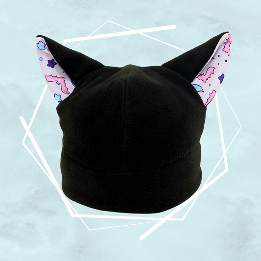 Bats and stars black nekomimi beanie