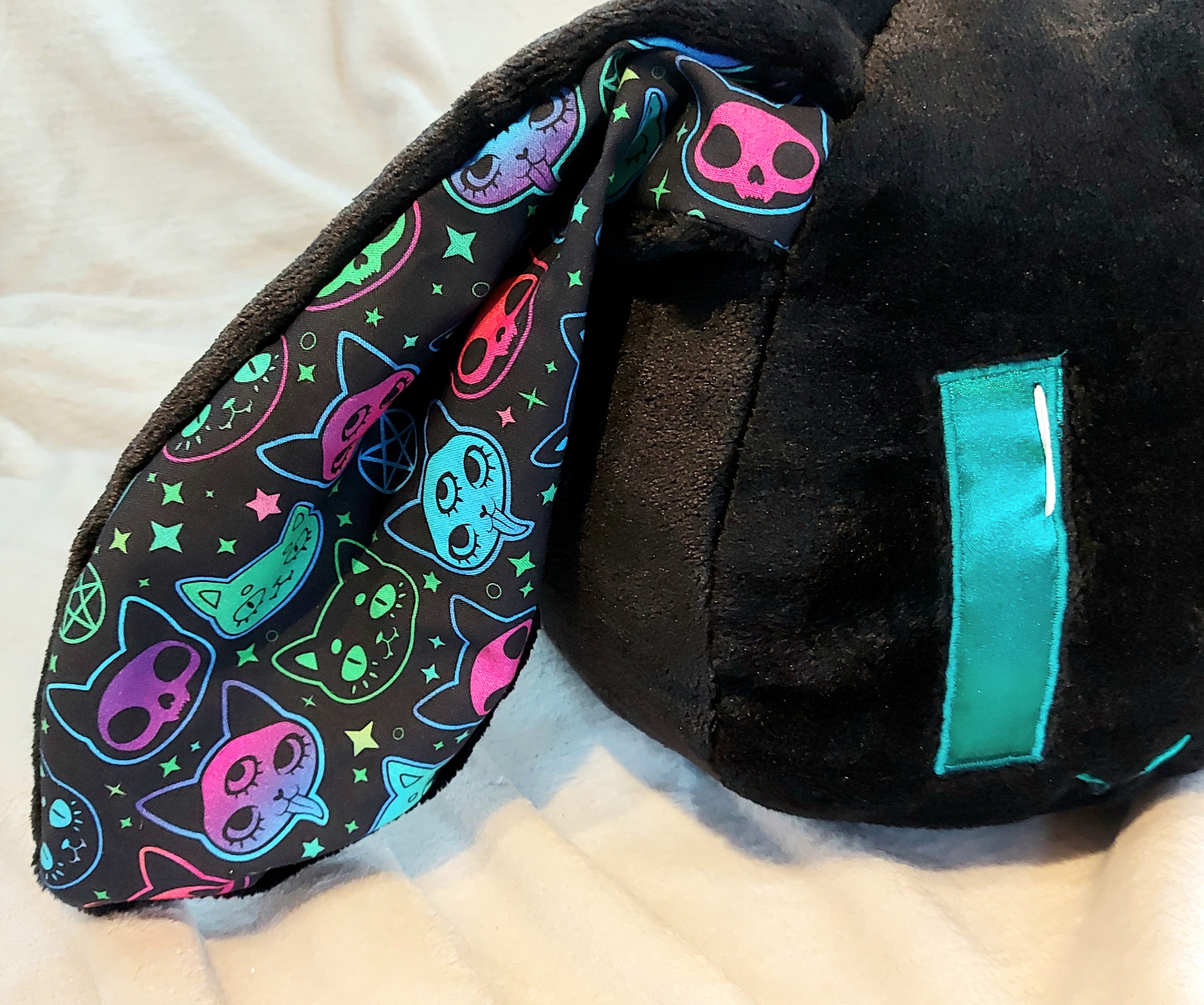 Black nekomimi beanie with colorful cats