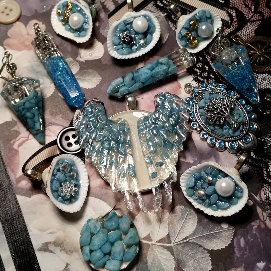 Always loved to make accessories with mixed media. For these pendants I used resin, real shells, stones, cabochons, charms, buttons and rhynestones.