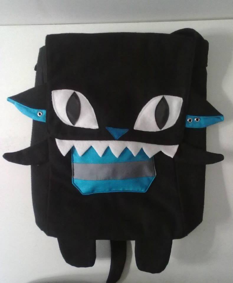 This one was a side bag what I made originally for myself. When people saw it asked me to make many different variations, such as bear, dinosaur and other colored cats. Strong and cute.