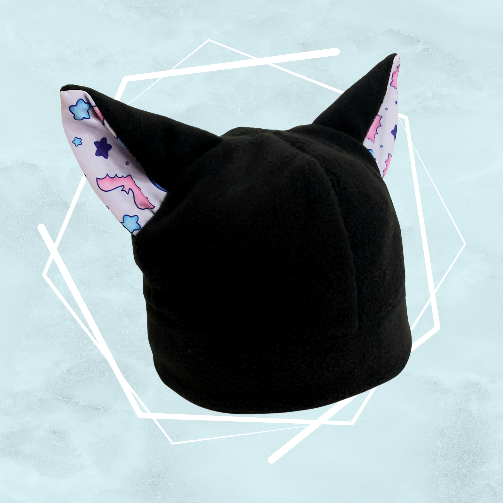 Don't like cool weather or winter without some warm support for your head and ears? Do you need a cool accessory to help this? This beanie was made of very warm, black polar fleece, so it's very functional, but to make it fun too, were cat ears - nekomimi - added to it too.
