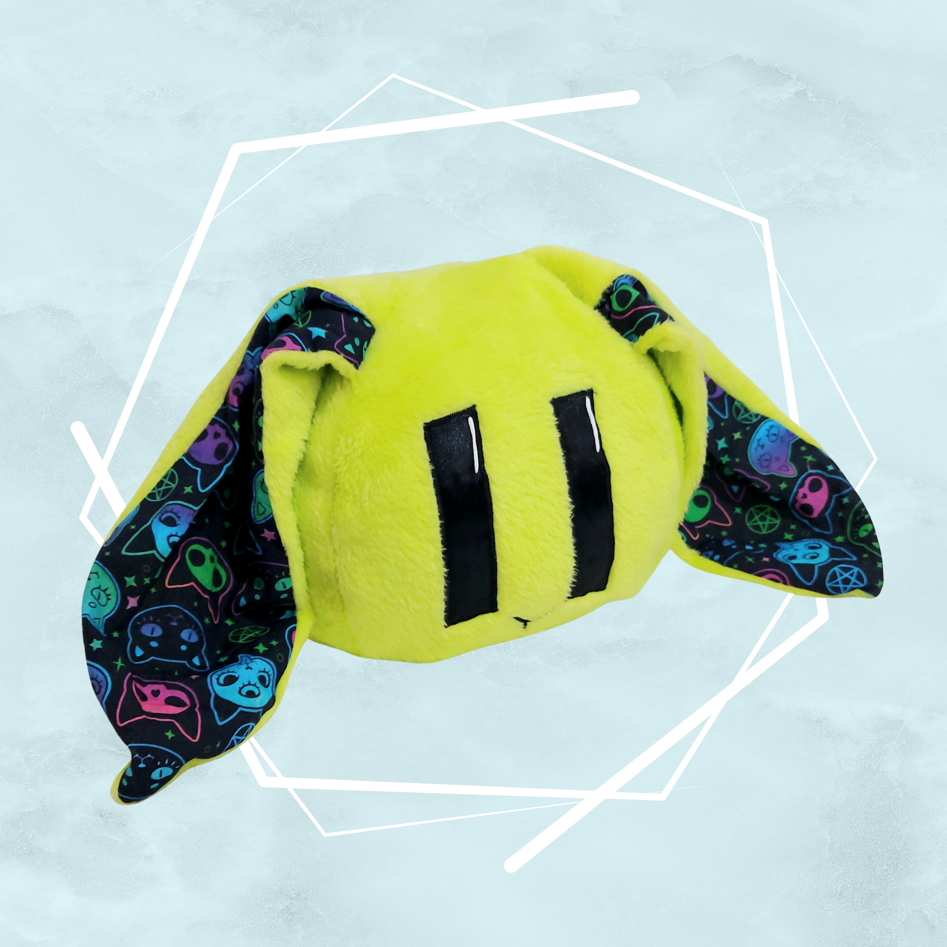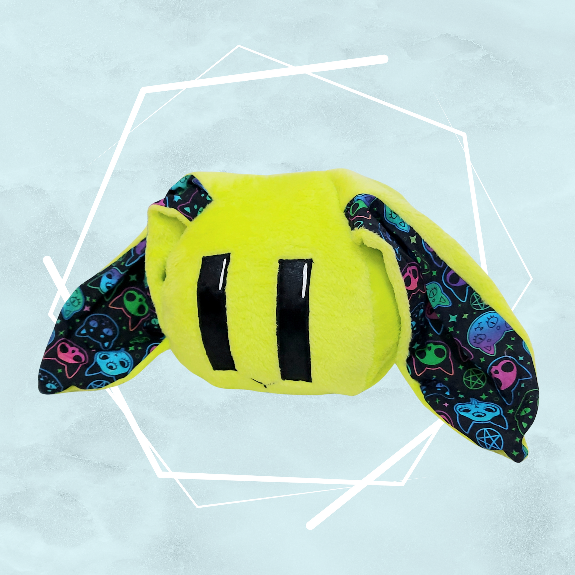 This very fluffy bright lime green bunny with colorful cats on the ears is a very cool design! Huggable, and also the perfect size for a cushion. It's made of really soft, good quality wellsoft/fleece fabric and antiallergenic filling. Handmade.