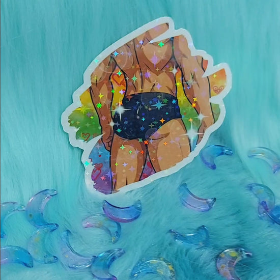 Vinyl sticker with holographic lamination. Waterproof and very shiny