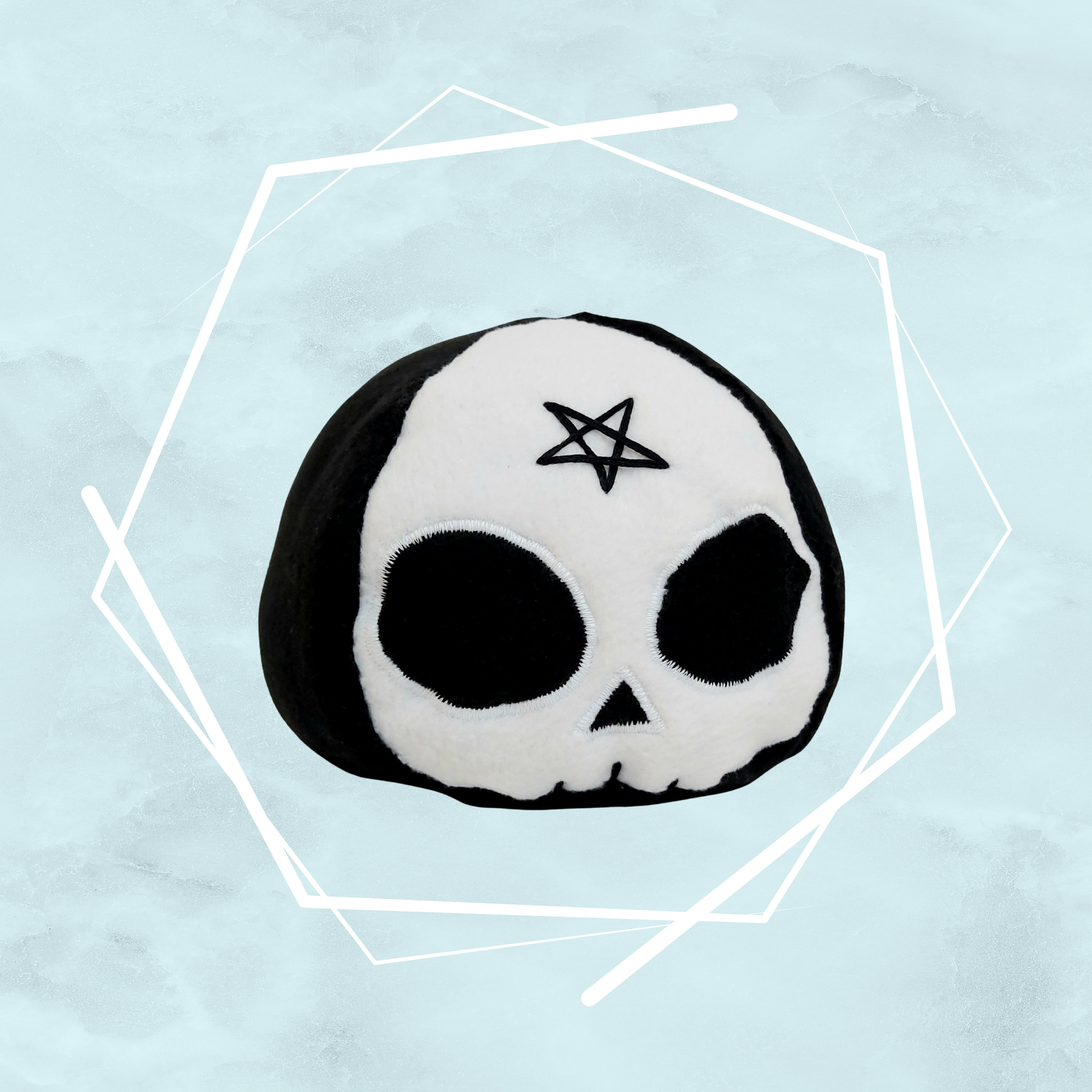 Small Skull Plushies – adorable gothic-themed skull plushies available in two designs: one with a pentagram detail and one without. These little skullies balance spooky aesthetics with soft, cuddly charm, making them perfect for both gothic decor and cosy cuddles. Handmade from high-quality polar fleece fabric and filled with antiallergenic stuffing, they are incredibly soft, lightweight, and huggable despite their dark theme. Their compact size makes them ideal for shelves, desks, beds, or as comforting plush companions. A big favourite among both adults and children, especially for fans of gothic, witchy, and alternative styles.